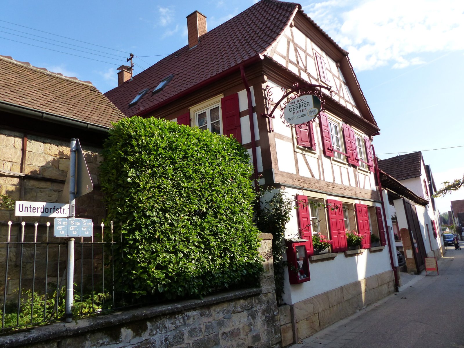 Galerie Das Haus, die Wohnung und der Garten Vor dem HausFerienwohnung EinfahrtIhre AussichtDie KücheEingangsbereichDer GartenDie TerasseRuhe & Gemütlichkeit Impressionen – Bilder aus der Umgebung Rathaus OberotterbachHotel Restaurant SchlösslKath. Kirche OberotterbachBlick Richtung WestenHerbststimmungDeutsches Weintor, Schweigen – RechtenbachIn der Ortsmitte OberotterbachIn den Weinbergen